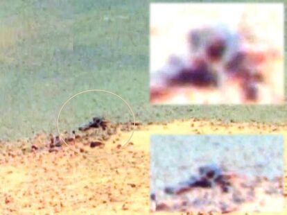 火星に線路が?火星の表面にまっすぐ伸びる通路とそこに停止している物体が発見される。