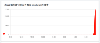 ユーザーからの障害報告を収集・分析し、オンラインサービスの異常を検知するサイト「Downdetector」によれば、日本時間の16日8時20分頃から、YouTubeに関する報告が急増していることが確認できる。