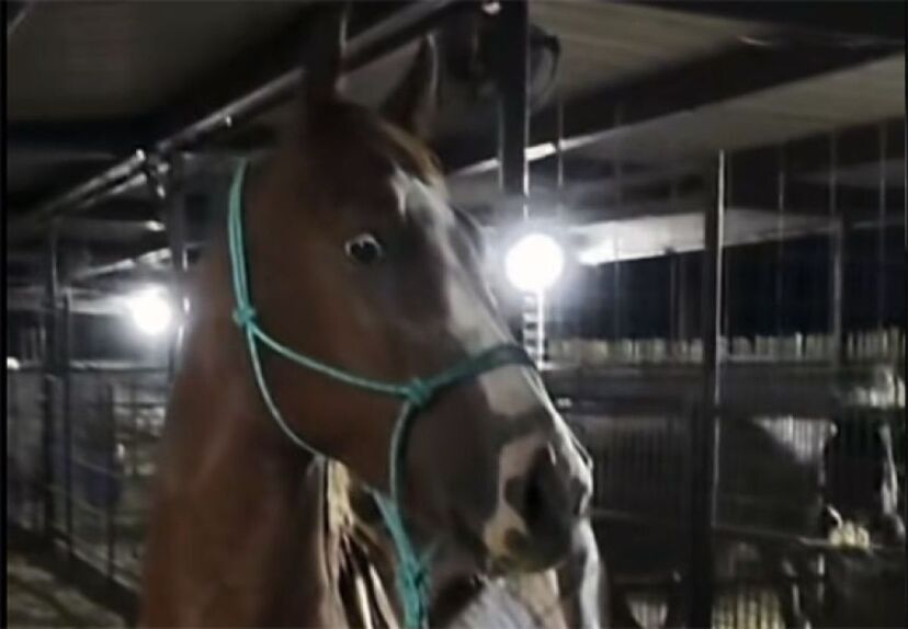 ・目が完全に白目でいっちゃってる。あの馬、魔法でもかけられたと思ってるよ