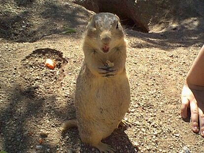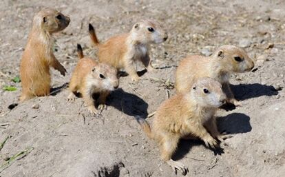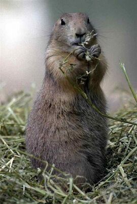 プレーリードッグは北米原産で、北米の草原地帯(プレーリー)に穴を掘って巣穴をつくり、群れで生活する齧歯類リス科の動物。体長30-40cmほどで、毛色はおおむね淡い茶色。草食で、アルファルファ、イネ科の植物を好む。