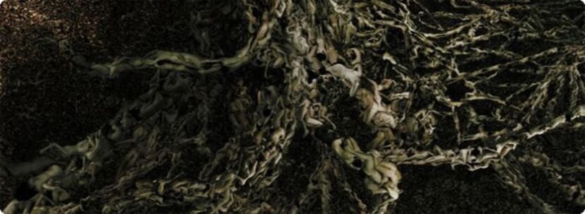 大地を覆うように根をはやし、そして点へと続くように伸びていく巨大な木。これは写真家のAngelo Muscoの作品だそうで、2010年6月に撮影がはじまり、1年を費やし、ニューヨークの3箇所のスタジオで撮影したボランティアで集まった人々の写真を合成し作られたもの。一枚の写真に約100万体のボディーが使われている。