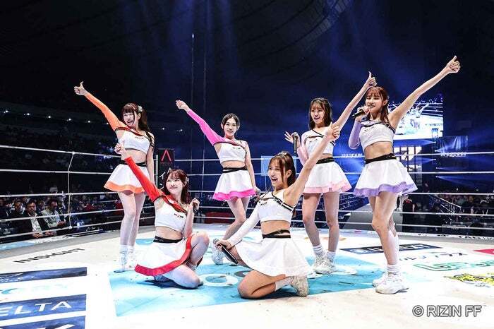 総合格闘技の試合を主軸としながらも、キックボクシングルール、スタンディングバウトルール、グラップリングルールといった多様なルールで試合を展開するRIZIN。そしてそのリングに華を添える「RIZINガール」。2025年度は、「オールナイトフジコ」(フジテレビ系)出身の出町杏奈、自身も柔道などの経験を持つ武井さら、日本レースクイーン大賞2023「新人部門」の木村楓など多様なメンバーが名を連ねた。