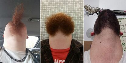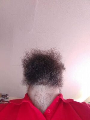 毛の生えた海坊主、あるいはヤバイ後頭部、あるいはアレとかにしか見えないのだが、実はこれ、ヒゲ面の人が、顎(あご)を思いっきり上げて撮影した写真なのだそうだ。