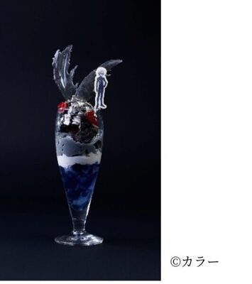 渚カヲルの雰囲気を、エルダーフラワーとキンモクセイシロップを使用し再現した一杯。グラデーションと花系のシロップの風味により渚カヲルの儚さを表現しました。