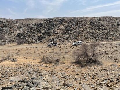 微小な巣穴の帯状構造が見つかった大理石が点在するナミビアの砂漠地帯。 Foto/©: Cees Passchier