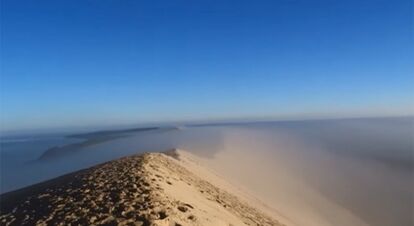 今年1月28日、フランスにあるピラ砂丘(標高100m以上)の頂上を歩いていたフロリアン・クレメントさんは、雲まで伸びる神秘的な人影に遭遇した。