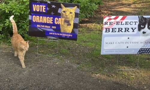 誤解を解くため、飼い主のビセットさんは「この子は地域の“自転車道市長”です」と書かれたポスターを掲示。するとそれがきっかけで、「うちの猫だって市長に立候補できるはず」と他の飼い主たちが次々と声を上げ、思わぬ“選挙ブーム”が巻き起こりました。