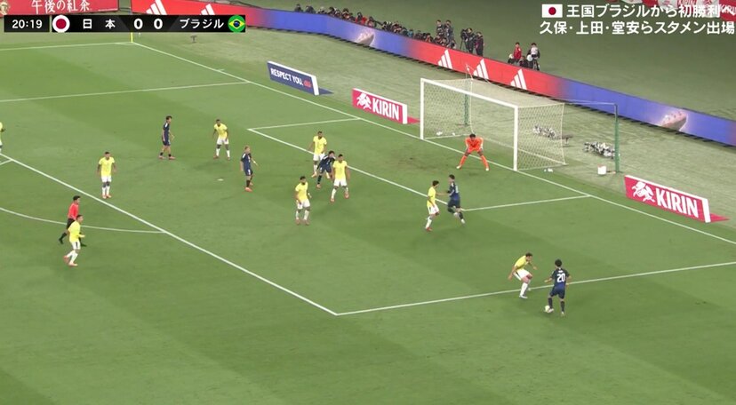 日本代表のMF久保建英が、ボックス内で股抜き右足クロス。技術の高さが光ったプレーが脚光を浴びた。
