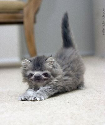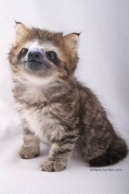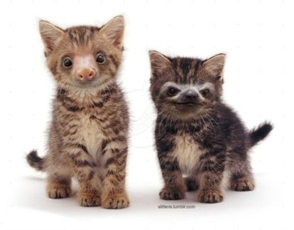 前回、猫とフクロウを足して2で割ったキメラ生物のフォトコラージュを紹介したかと思うが、今回は子猫とナマケモノバージョンである。猫はどんな動物とかけあわせても、それなりにかわいさを保てる仕様になっているらしい。