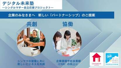 休眠預金等活用法に基づき、指定活用団体である一般財団法人日本民間公益活動連携機構(所在地:東京都千代田区、理事長:二宮雅也)より資金分配団体に指定された一般社団法人グラミン日本(本社:東京都中央区、理事長:百野公裕)が公募した「デジタルスキル研修&就労支援を通じたシングルマザーのエンパワーメントと地域格差の解消」事業の一環として実施するものです。