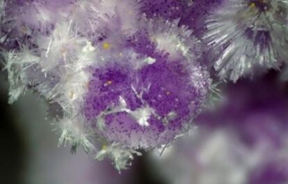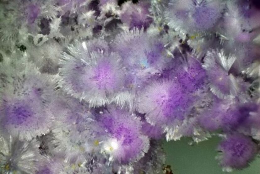 水に非常に溶けやすく、湿気によっても壊れてしまうので、標本が空気に触れないよう気をつけねばならない。薄いピンク色かスミレ色をしており、針状の結晶が噴霧されるかのように成長する。