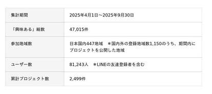 このランキングは、「スマウト」に登録している約8万人のユーザー(2025年9月30日時点)を対象に、2025年度上半期(2025年4月1日~9月30日)に地域が発信した情報(プロジェクト)に対して、同期間中に押された「興味ある」ボタンの合計数を集計して作成しています。
