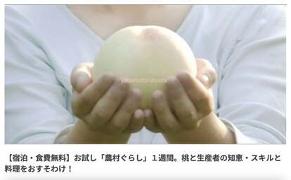 【宿泊・食費無料】お試し「農村ぐらし」1週間。桃と生産者の知恵・スキルと料理をおすそわけ!