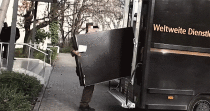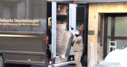 もたされている配達員は気の毒かもしれないが、他社の制服を着ている配達員が、DHLの宣伝文句が書かれた大きな箱を運んでいる姿はかなり目につくことだろう。確かに宣伝効果は高いかもしれない。