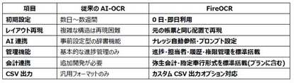 これらの課題により、貴重な従業員の時間が非効率な単純作業に費やされているのが現状です。「FireOCR」は、こうした課題を解決するために開発された初期設定不要で即日利用可能な次世代AI-OCRソリューションです。
