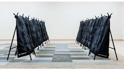 LEDを駆使した革新的なテクノロジー演出と独自のダンスパフォーマンスで知られるMPLUSPLUSが、防水性と耐風性を兼ね備えた、屋外対応の軽量・フレキシブル・ワイヤレスLEDディスプレイを開発して展示します。これまで開発してきた壊れにくいLEDや小型LED制御デバイスの開発技術を応用した軽量のメッシュ型ディスプレイは、防水性能や風の影響を受けないため、スポーツシーンや屋外イベントで活用でき、ドローンから吊り下げた飛行も可能。数人で持ち運び可能なため養生されている芝生や、重量物の設置が困難な歴史的建造物などでの使用が見込まれます。形状のカスタマイズも可能で、人型や商品シルエットなど、用途に応じた“空飛ぶディスプレイ”の制作が可能。この軽量LEDディスプレイは、ドローンによる吊り下げだけでなく、巨大なフラッグのように人が持って運ぶ演出や、施設への常設設置など、さまざまな用途に対応可能。会場では6m×9mの巨大スクリーンを展示します。
