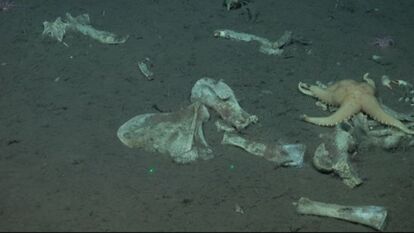 既存の生物としては、骨を分解して生きる多毛類のゾンビワームの姿も捉えられた。