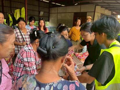 ミャンマー大地震支援活動:物資支援を行う高橋