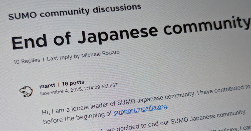 「Firefox」をはじめとしてMozilla製品のサポートページの日本語化に尽力してきたコミュニティ「SUMO Japanese community」が11月4日、活動の終了を宣言した。