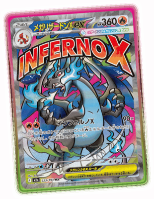 また、新レアリティとして「MA(メガアタックレア)」が導入され、「メガリザードンex」「メガルカリオex」「メガサーナイトex」などメガシンカポケモンの強力なワザを描いた特別仕様カードが登場する。