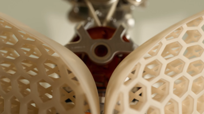 機械部はまず、3Dプリントによる格子状ポリマーで覆われ
