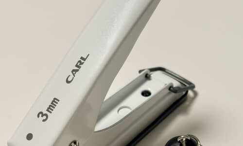 今回注目を集めているのは、「良さそうなパンチがあったので買ってみた」と“3ミリの1穴パンチ”を紹介する投稿です。一般的な穴開けパンチの穴の直径は6ミリ前後であることが多いので、3ミリのパンチは少し小さめですね。このパンチをどう使うのかというと……。