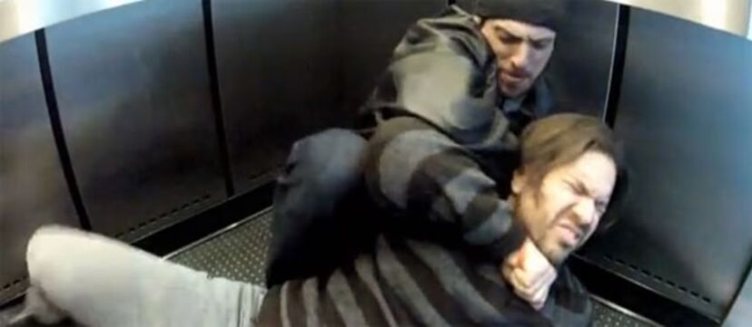 これはエレベーター内で行われた実験で、何も知らない一般人がエレベーターに乗ろうとすると、その中に2人の男性がいて、1人が、もう一人の首にコートを巻きつけ締め上げ、まさに殺そうとしているシーンが展開されるというもの。