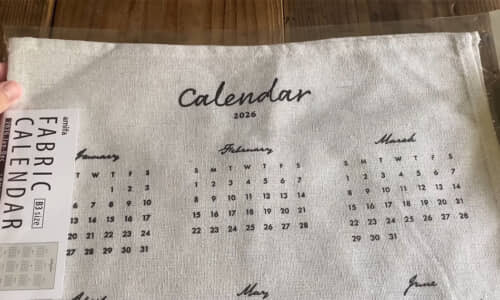 今回は、セリアから発売された布製の「2026年ファブリックカレンダー」に刺しゅうを施してアレンジします。