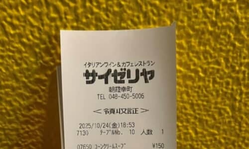 サイゼリヤといえば低価格でイタリアンを楽しめるお店ですが、レシートの合計金額を見ると「4130円」という驚きの金額が! 物価上昇の波もついにここまで来たのかと思いきや、レシートをよく見ると……。