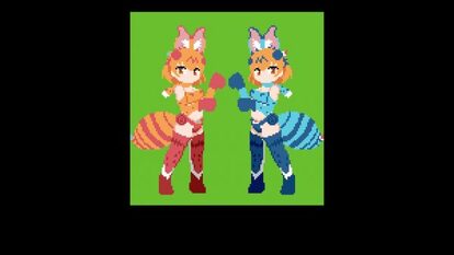 ピクセルアートは制約との戦いです。この極小キャンバスの中でキャラクターの個性をどう描き分けるかが勝負となります。とくに難しいのは目ですが、シーサーバル・ライトとシーサーバル・レフティを見比べてみると、ほとんど同じでした。そのため、左右を反転させることで簡単に描き上げることができました。