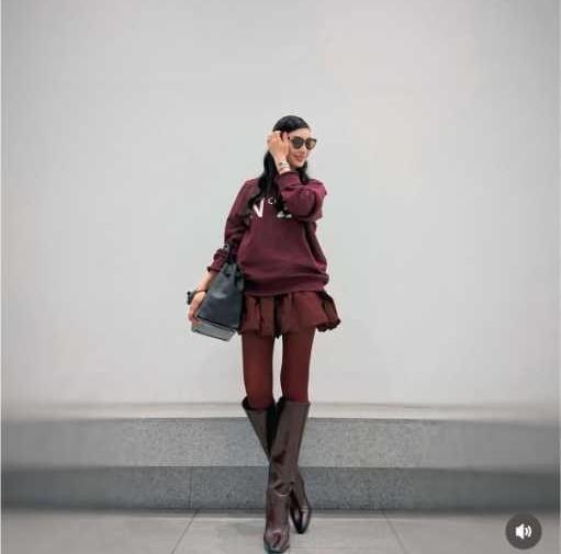 アンミカは「@numeroventuno のビッグトレーナーに、またまた今年旬のミニバルーンスカートを合わせて、ブーツも赤茶系に。今年、このZARAの赤茶のロングブーツが大活躍!」と投稿で明かしており、手頃なブランドアイテムを上品に着こなす“アンミカ流ファッション術”が光る内容となっている。