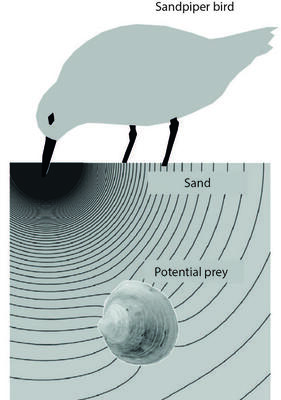 チドリ目に属するシギやチドリは、くちばしで砂の表面を軽く押すことで、砂の中を伝わる微細な圧力の波を感じ取る。