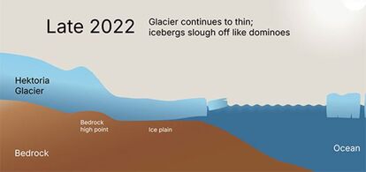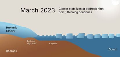 ヘクトリア氷河は、海底に広がる平らな地面の上に乗っており、まるで氷が滑り台の上をゆっくりと滑り出していくように、海の方向へと流れていた。