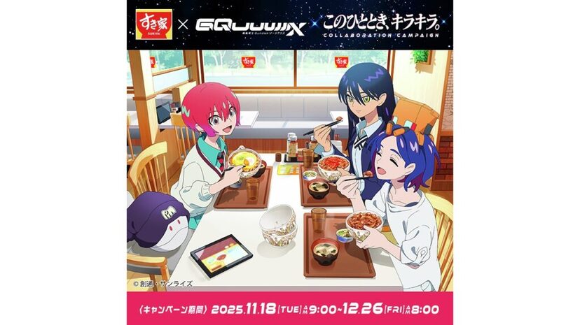 株式会社すき家(代表取締役社長:笹川 直樹 本社:東京都港区)が展開する牛丼チェーン店 「すき家」は、11 月 18日(火)AM9:00より、『機動戦士Gundam(ガンダム) GQuuuuuuX(ジークアクス)』とのコラボキャンペーン「このひととき、キラキラ。」を開催します。