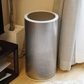 まずは本体のデザインから紹介します。加湿器のような空調に関連する機器は見える場所に出しておく必要があるので、デザインも軽視できない重要な要素です。moya Craftは円柱形状の機器で、見た目は極限まで無駄を削ぎ落しています。素材はステンレスと樹脂を採用しており、上部のホワイトもしくはブラックの縁取りがワンポイントになっています。