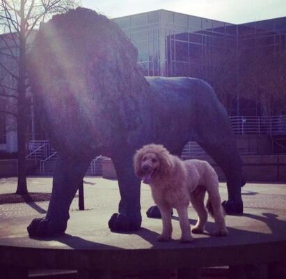 飼い主が、地元にあるるオールドドミニオン大学のライオンの像を真似てヘアカットした直後、通りを歩いていたところ、小さなライオンと見間違った人があわてて911に電話してしまったようだ。通報をうけた警察は、バージニア動物園に連絡し、園内のライオンがいるかどうかの確認をとった。そこで飼育されている2匹のライオンはしっかり確認されたが、動物園側にも一般人からの問い合わせが相次ぎてんやわんやだったという。