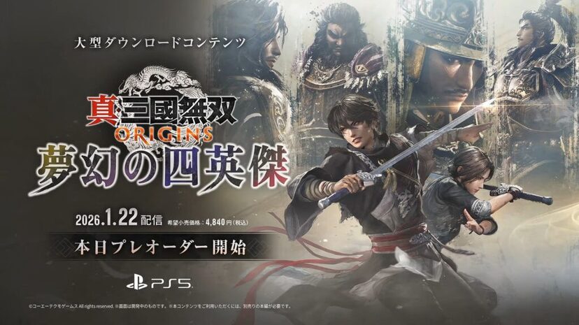 SIEが11月12日に配信した情報番組「State of Play 日本」にて、『真・三國無双 ORIGINS』の大型DLC「夢幻の四英傑」が2026年1月22日に発売されることがが発表された。