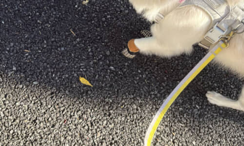 現場の状況を察してちょっぴり緊張しつつ、信頼している飼い主さんの様子をうかがっていたのかもしれませんね。思わず「大丈夫だよ、通っていいんだよ」と声をかけたくなる、そんな優しい世界が広がっています。