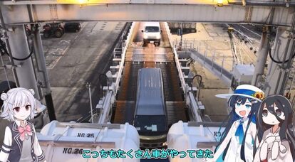 次々と乗り込んでくる車。まんとるさんは他の便より明らかに乗用車が多いと感じたそう。バックで積み込んでいるトラックはランプ付近に停めるのだろうとこと。