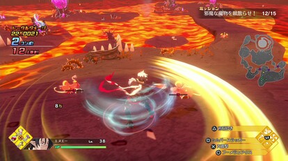 ステージクリア時に捕らえた魔物を従魔として戦場に連れて行くと、彼らを武器に変化させる「魔チェンジ」を使用することができます。魔チェンジ中はエヌエーが強化されるうえ、強力な奥義「魔チェンジ技」を使用できます!