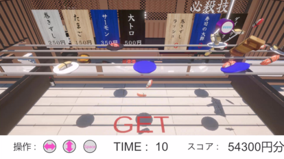 プレイヤーのミッションは、流れてくるお寿司を正確に狙い、クレーンでキャッチすること。お寿司の合計額やスピードによってスコアが決まります。