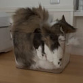 当時の状況について「テーブルの上に置いてある箱にぬるりとお尻から入り、液体となりました」と飼い主さん。箱の中でググーっと背伸びをした直後、体を丸めたことで天地が逆転したような、前後不明の入り方になったのだとか。確かに見れば見るほど、物理法則がゆるくなったように感じられます。
