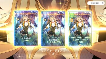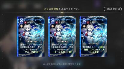 ふたつ目の関門。それは「ヒラメキ」の運だ。「ヒラメキ」とは、戦闘またはイベントで発生するもので、キャラクターのカードを強化することができる。