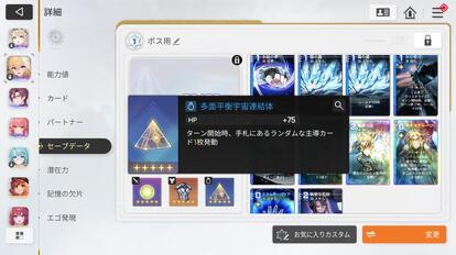 しかし、簡単なステージでは持ち帰れる「容量」の上限が低い。そのため、せっかく作った強力なデッキが、保存する際に弱体化(強化したカードが元に戻ってしまったり、削除した弱いカードが復活してしまったり)させられてしまうことがあるのだ。