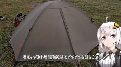 キャンプ場に到着。テントを張ったのでさっそく中でグダグダします。