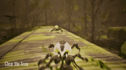 注目すべきなのは敵クリーチャーたちの見た目・動きそして発する音だ。モチーフとした昆虫の動きを緻密に再現したその様子は、見るものに対して良い意味で嫌悪感を抱かせるクオリティだ。