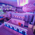 館内に入ると目に飛び込んでくるのは、右脳と左脳から「脳汁」が飛び出す横幅1.7mのネオンアート。人気イベント「大ネオン展」を主催する「アオイネオン」が制作。職人の手作業でガラス管から丁寧に作られた光の彫刻。ネオンのピンクとブルーの光で、「ネオン浴」をお楽しみください。