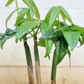 今回、たらの芽さんはダイソーで購入した細い幹のパキラを植え替えることに。まずは3つの株を用意したら、根の負担を減らし成長を優先させるために先端をカットしました。