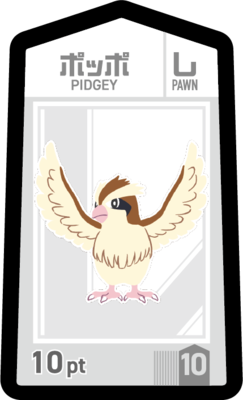 使用するコマは、「ピカチュウ」「リザードン」「カイリュー」「ミュウツー」などポケモンをモチーフにしたものとなっている。なお「ミュウツー(ミュウ)」コマには「一部のコマ以外の全てのコマを受けることができる」などの特殊なルールがあり、この特殊なコマを活用することも、勝利のためのポイントとなるようだ。