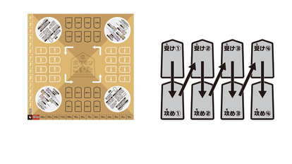ゲームの流れとしては、盤面を囲むように座った4人のプレイヤー(この時向かい合っているプレイヤー同士がチームになる)が順番に「受け」と「攻め」のコマを出していくような形になる。